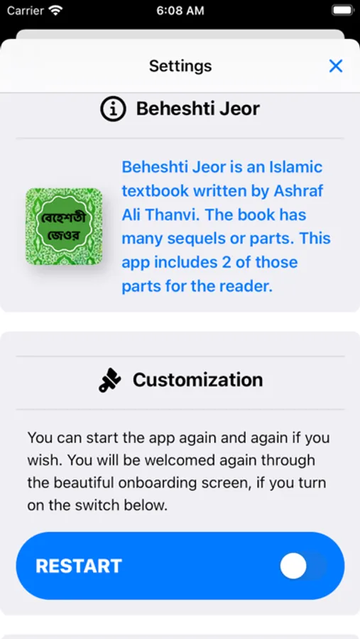 Beheshti Jeor is an Islamic famous written by Scholar Ashraf Ali Thanovi. Translated to Bangla Beheshti Jeor by Sayed Shamsul Haque Faridpuri. Beheshti Jeor Bangla is an application developed so that people in this platform can read the Beheshti Jeor Islamic book in bengali. Bangla Beheshti Jeor app can be helpful to many Bengali users of Ashraf Ali Thanvi islamic books and other mas'ala books and Fiqh Books. This book is one of the famous Ashraf Ali Thanvi Islamic mas'ala books and there is a great user base of this Islamic Mas'ala book. Here is the standard Apple Terms of Use (EULA) https://bendroidapps.com/beheshti-jeor-privacy-policy/