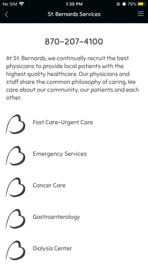 Welcome to the St. Bernards Medical Center mobile app. This app provides information and updates in regards to our services, upcoming events, contact information and more. We look forward to curating and growing our St Bernards Medical Center Community!