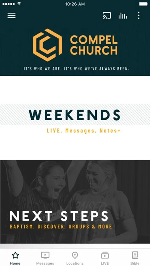 Our App is designed to provide you with everything you need to stay connected with Compel Church. Here you can view weekend Messages and take notes, Give, register for events and Next Steps, and find all things for your kids and students. This app was designed as a quick resource with your whole family in mind.