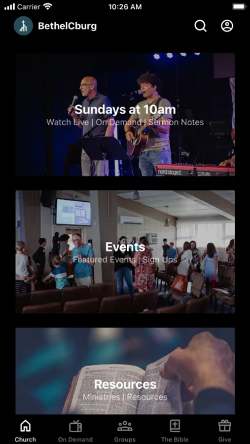 The Bethel Cburg App was developed with the Subsplash App Platform.