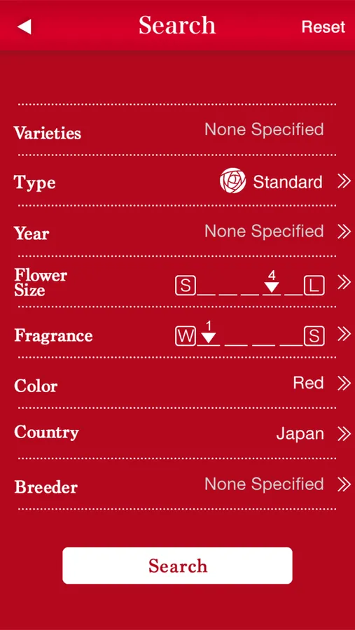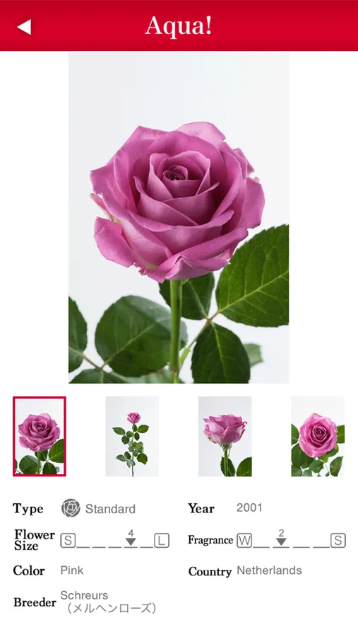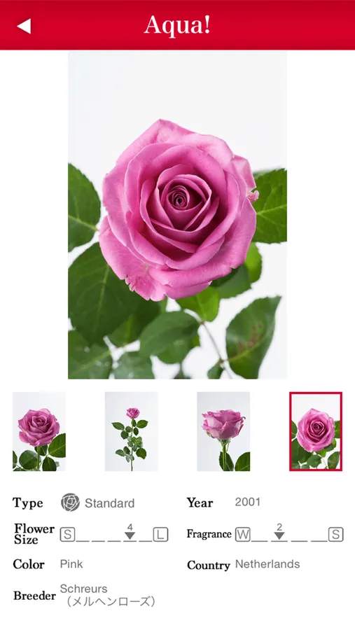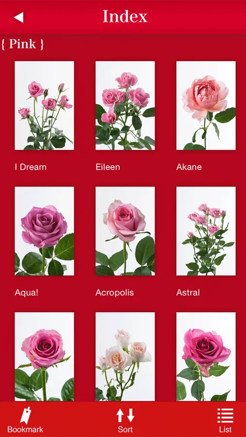 You can browse all the rose varieties on the app. You can sort the list by color, size, fragrance and other characteristics.