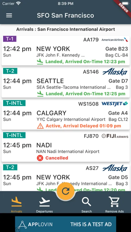 Flight arrivals and departures information for San Francisco Airport (SFO)