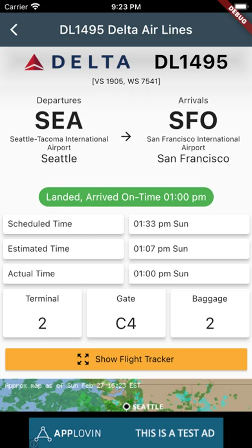2) Detailed flight information (terminal, gate number, baggage area, flight number, flight status)