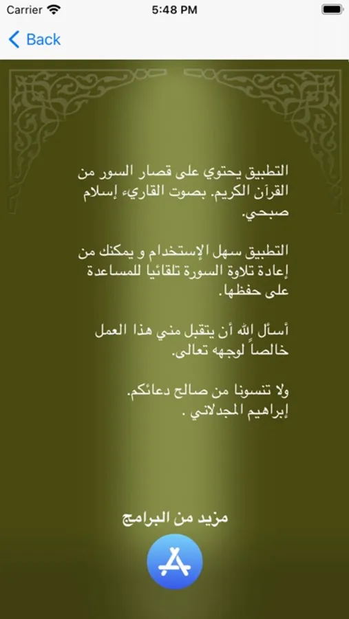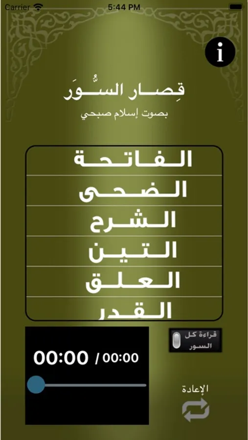 التطبيق يحتوي على قصار السور من القرآن الكريم. بصوت القاريء الشاب إسلام صبحي.