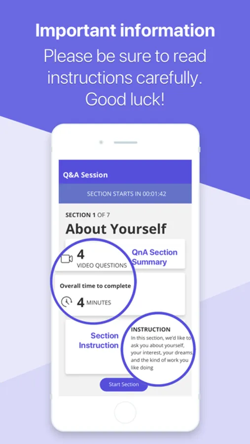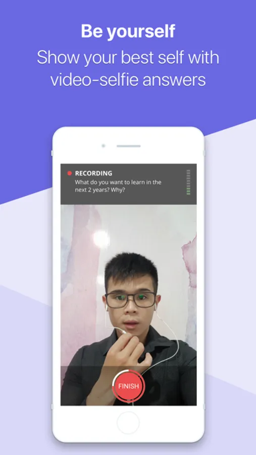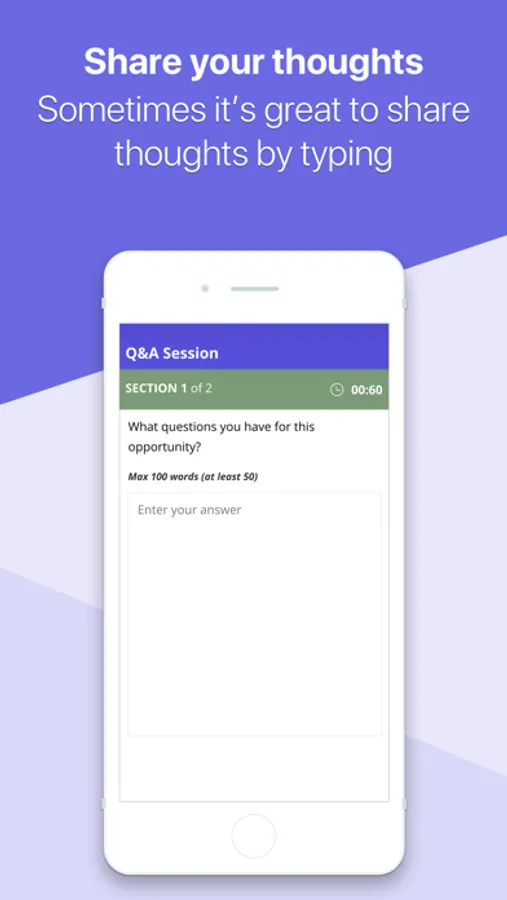 How does it work? After you have installed the app, you need to click on the link or enter the code, found in your invite email from the company. You will then find the interview questions the company has designed for you with an explanation. In the app you can record your video-selfie replies, one question at a time. The company may use the “no-rerecording”feature so be careful and think carefully about your answers. The replies are strictly confidential and can only be seen by the company.