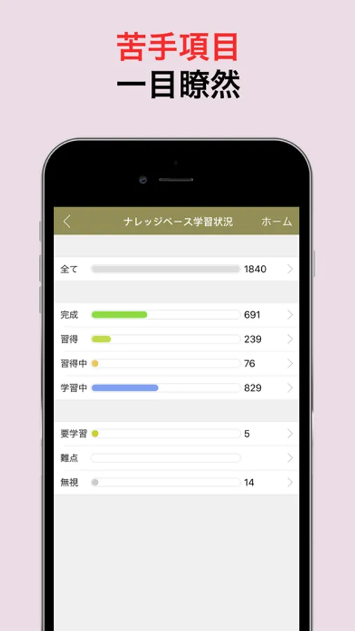 学習記録管理機能により学習状況や苦手項目が一目瞭然。