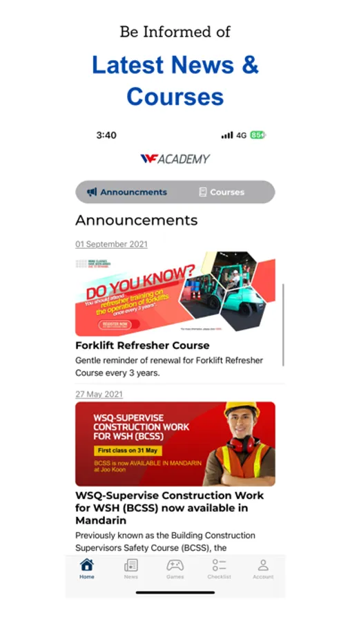 Wong Fong Academy, an educational institute in the Continuing Education and Training (CET) sector, is committed to provide quality skills training across all industrial sectors in Singapore. Our courses are designed, planned and conducted by a team of trainers with vast experience in their respective fields. The Academy engages with regulatory bodies to keep abreast of changes to ensure that the courses we develop are both current and relevant. At Wong Fong Academy, we believe that everyone has a part to play in ensuring safety at the workplace. We strive not only to transfer skills and knowledge, but to nurture in our learners an attitude of taking personal responsibility for safety. By doing so, we hope that they can make a significant contribution to safe work practices in their workplace.