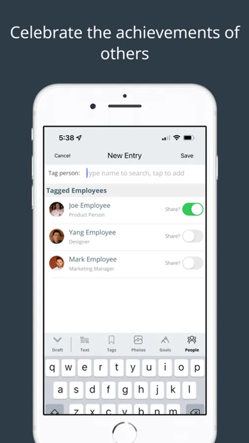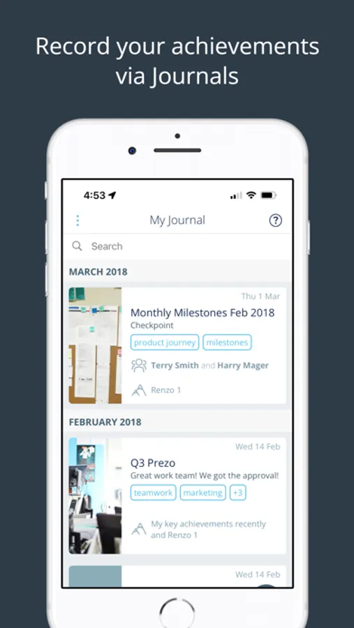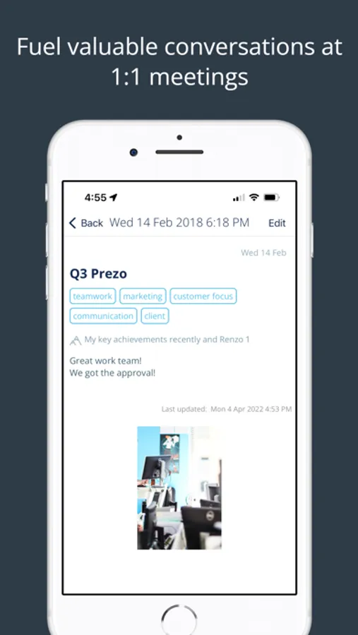 Employees can capture successes and feedback on the go. Share it with others (in particular their managers), and link their ongoing successes to their goals. Even take a photo or selfie to capture that great moment.