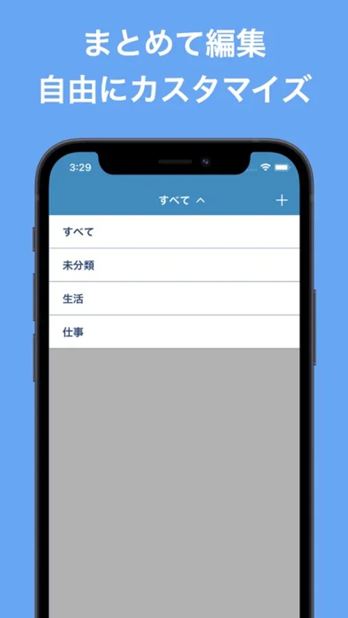 追加や編集はもちろん、並び替えや文字数カウント、パスワードの設定やフォルダ分けまで可能。難しい操作もなく、直感的にお使いいただけます。