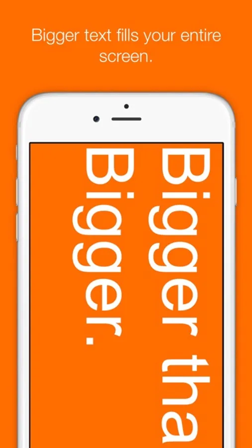 Bigger displays your text as large as possible on your device screen. You can use Bigger in public places, during social gathering, in emergency, or just any places to get your message across loud and clear. Any time you want to show other some text - an address, a phone number, a message or an idea, Bigger will help you to display them with impact.