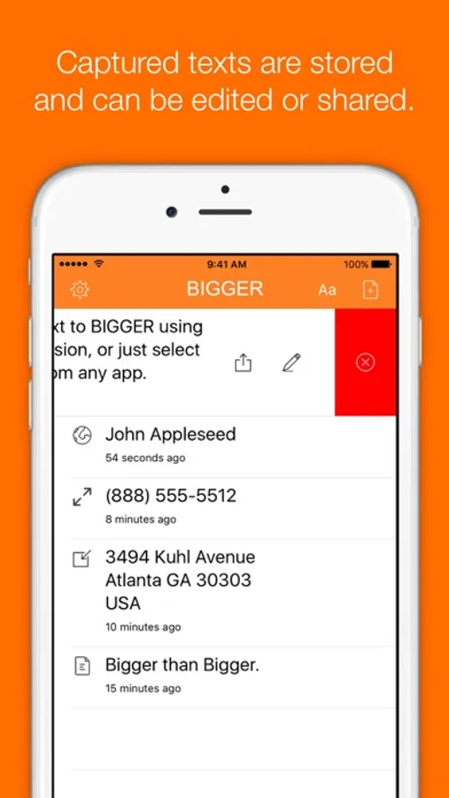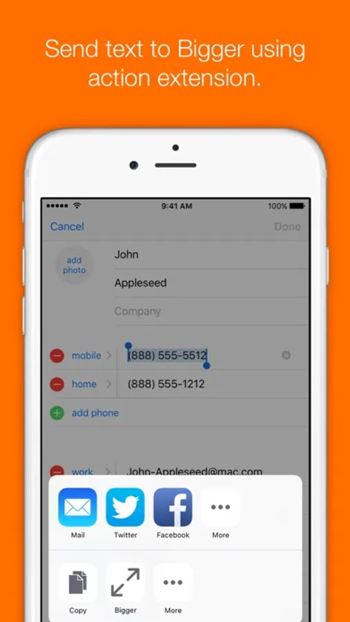 You can also send text to Bigger from any App that supports iOS action extension or url scheme.