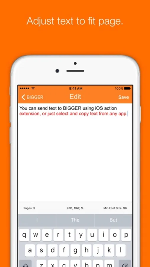 You can also copy text from other App into iOS clipboard. Bigger will automatically add the text into it's own list, and you can show them bigger any time you want.