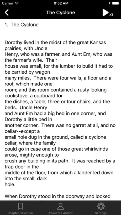 The story chronicles the adventures of a young farm girl named Dorothy in the magical Land of Oz, after she and her pet dog Toto are swept away from their Kansas home by a cyclone. The novel is one of the best-known stories in American literature and has been widely translated.