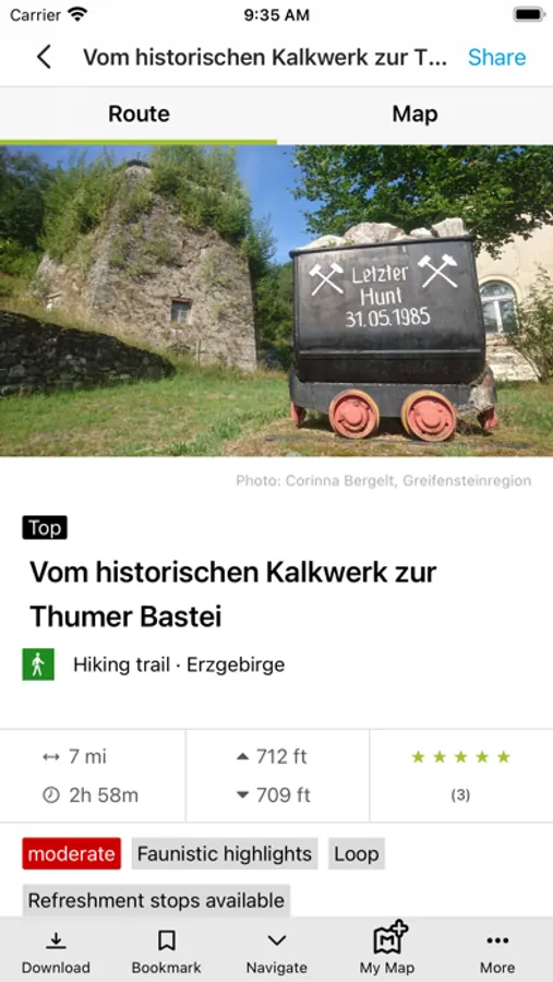 - Detailed description including distance, elevation gain, duration and difficulty plus images