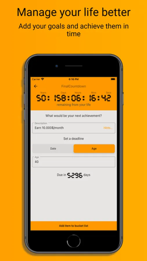 FinalCountdown is a death countdown and bucket list app, so you can live your life to the fullest!