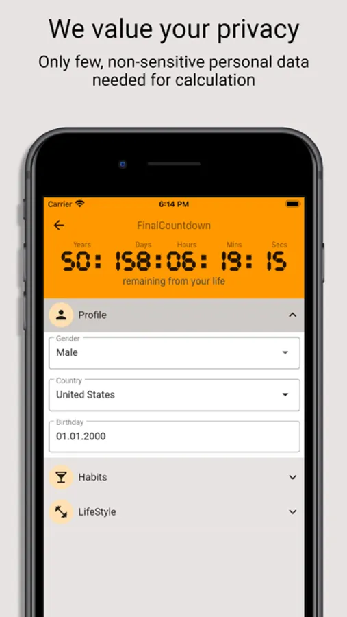 The FinalCountdown App calculates an estimate of your life expectancy based on a combination of