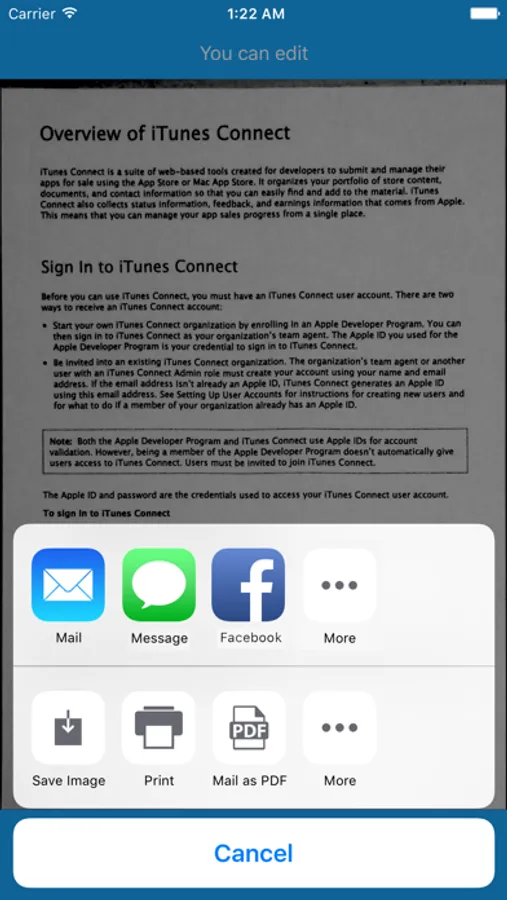 Instantly print out docs in Scanner Mobile with nearby printer via AirPrint.