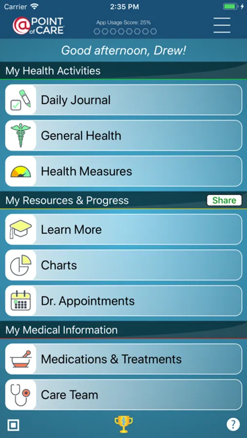 • Manage your medications and treatments, including reminders