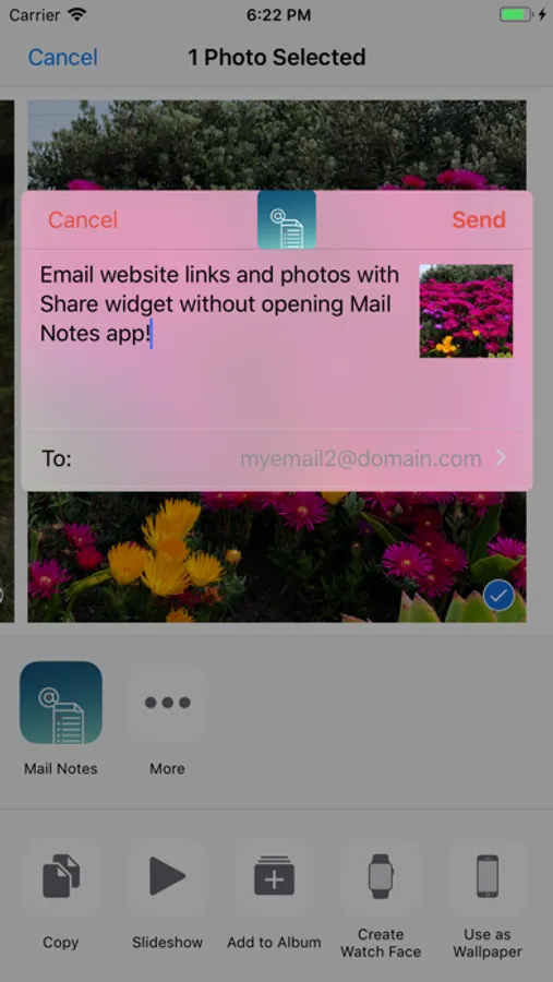 • Share widget makes it super easy to use send email photos and browser links directly, without opening Mail Notes app.