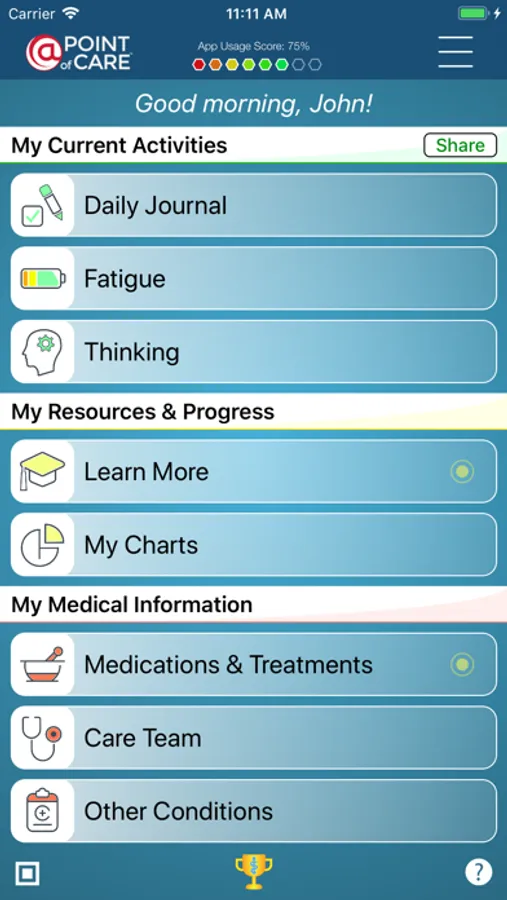 • Gain insights from easy-to-understand charts that record your test results, medication adherence, and more