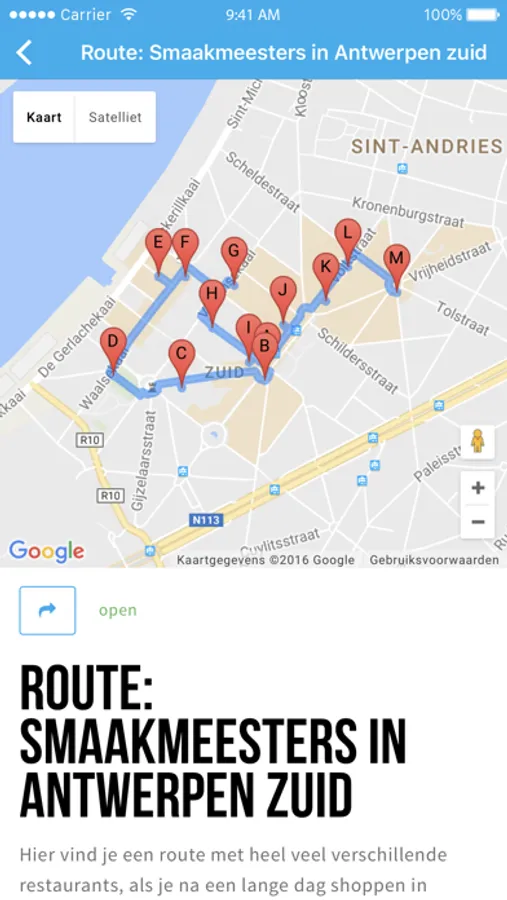 De Antwerpen City App geeft informatie over alles op het gebied van horeca, retail en cultuur in Antwerpen. Zo vind je met de app eenvoudig een restaurant, café of hotel, maar ook de leukste winkels of informatie over bezienswaardigheden en musea.