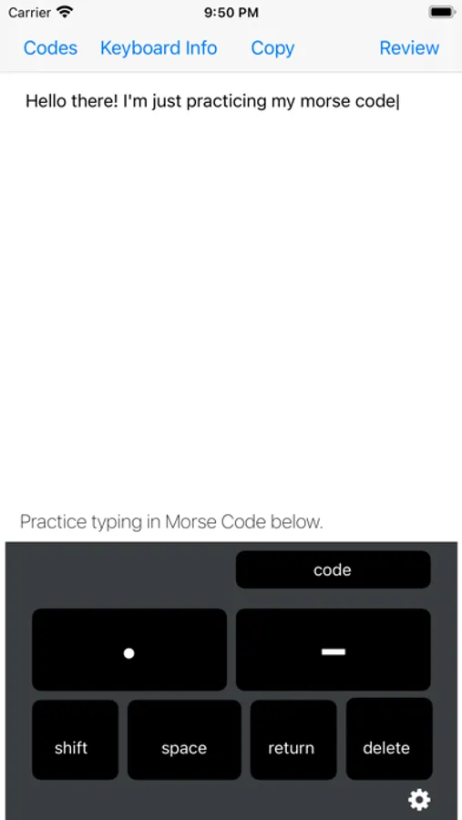 Install the included keyboard and you’ll be able to type in morse code using dits “.” and dahs “-“ in any app on your iPhone or iPad.