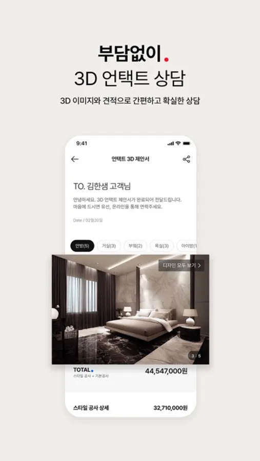 3D언택트 상담은 비대면으로 견적은 물론 3D 이미지로