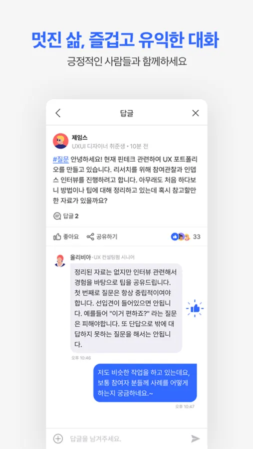 - 멋진 메세지에는 좋아요를 남겨보세요.