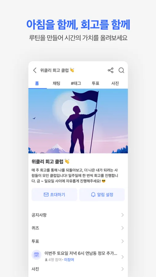 - 클럽의 코어 기능 채팅을 통해 대화를 나눌 수 있습니다.