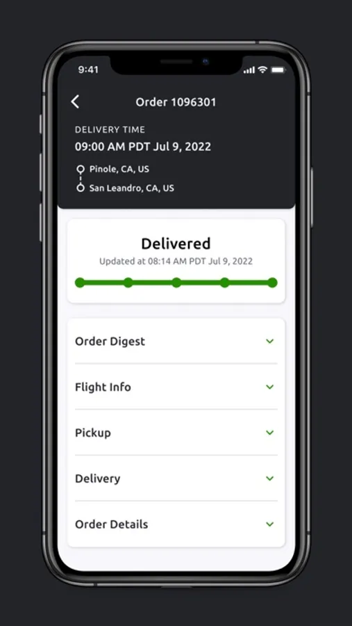 View order digests, pickup and delivery information, and the latest flight information.