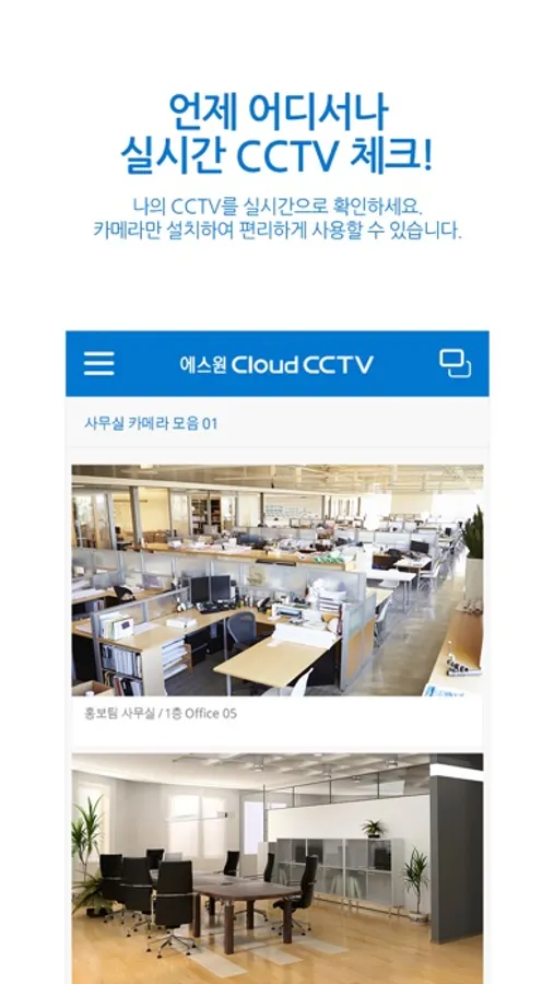 "Cloud CCTV"는 에스원의 영상 보안 서비스를 이용하는 고객이 원격으로 쉽게 영상을 모니터링 할 수 있는 기능을 제공하는 어플리케이션입니다.