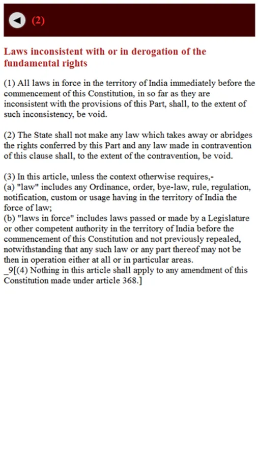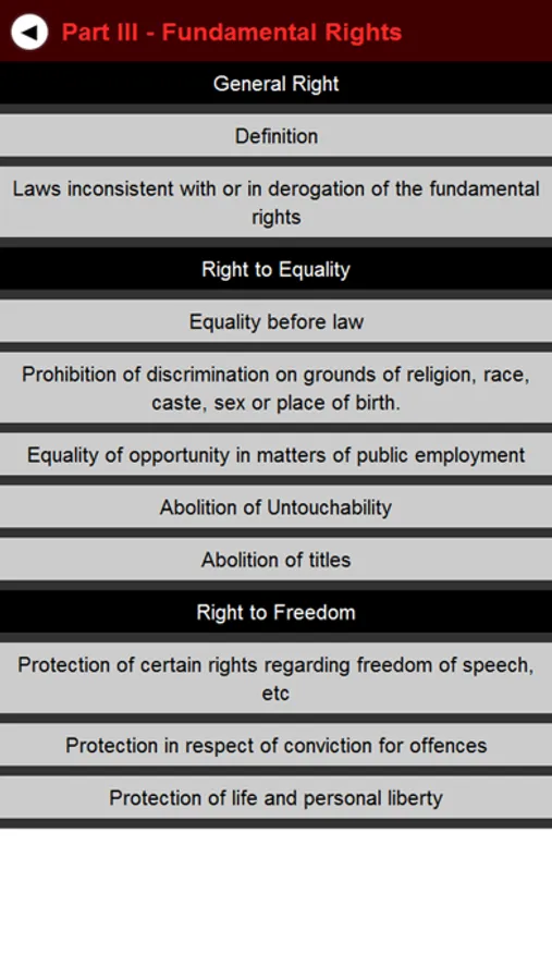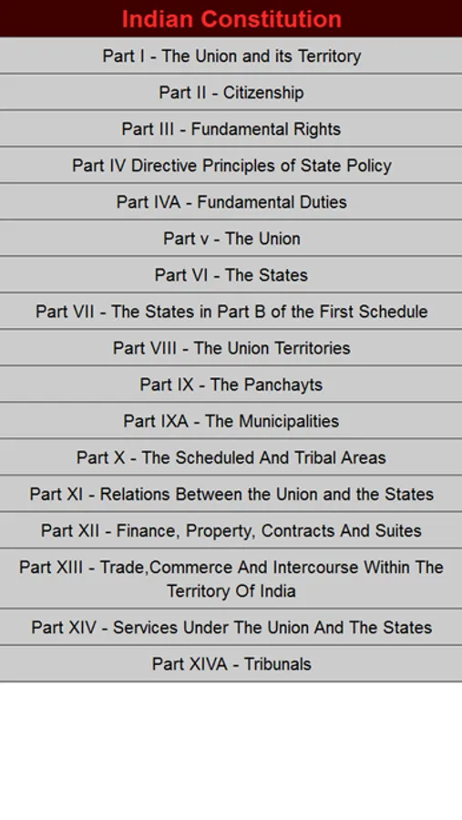 This application contains the information about Constitution of India which includes Preamble, full description of Articles with its parts and the Schedule. This application will enhance your knowledge about Indian constitution which helps you to know about the rules and regulation and also help to solve the question asked in examination