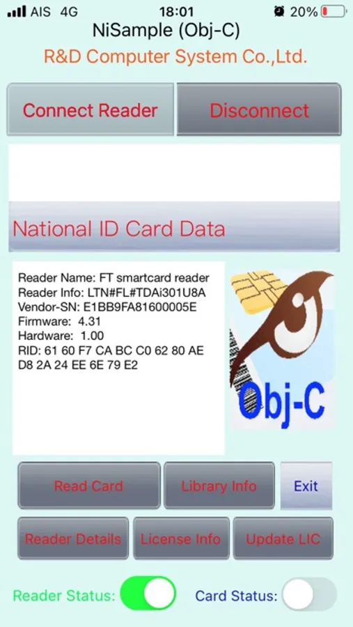 • Please buy the reader from http://www.rd-comp.com > Products > Thai ID card SDK> iOS > TDAi301BT or TDAi301U8A or TDAi301VC.