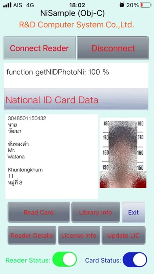 This app is available for downloading, including TDAi SDK and source code. You need a TDAi Thai ID card reader for trying real card reading.
