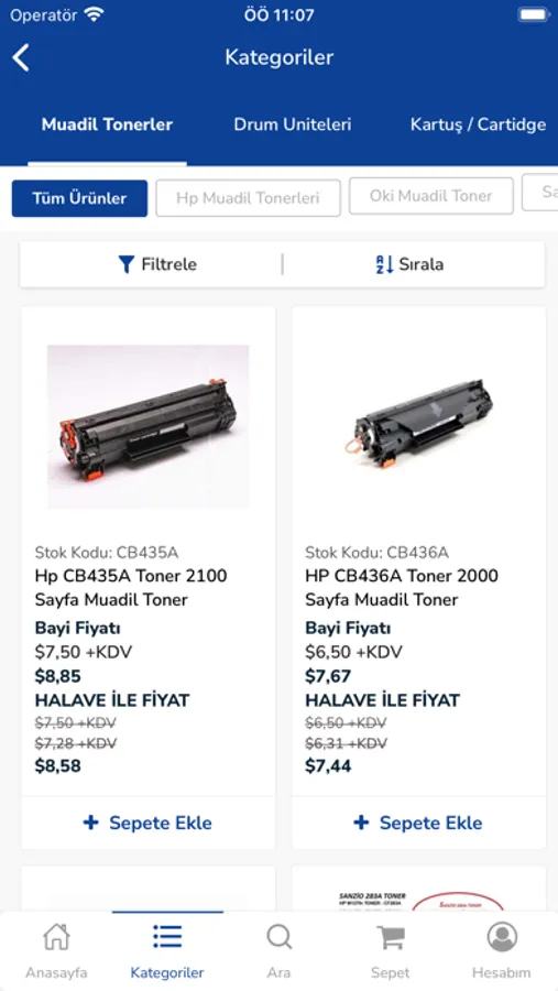 * Ürün kategorilerinde filtreleme yapabilirler