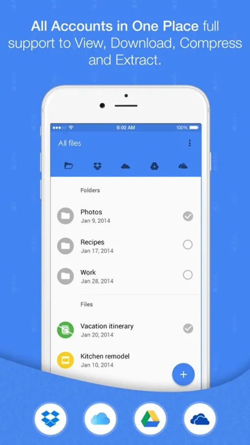 With cloud integration enjoy and maximize your Dropbox, Google Drive, OneDrive and iCloud storage space by compressing files and folders.