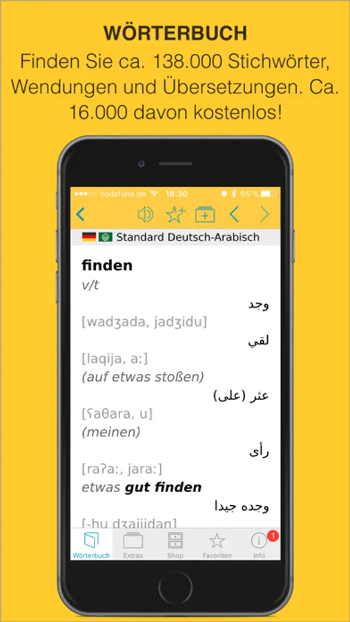 Before you buy, check out the innovative search, translation and learning features from our extensive free version of the Arabic dictionary with approximately 16,000 keywords and translations.