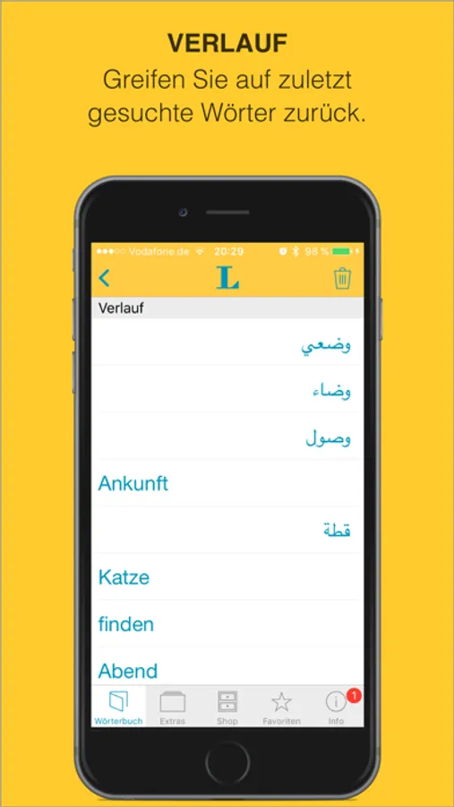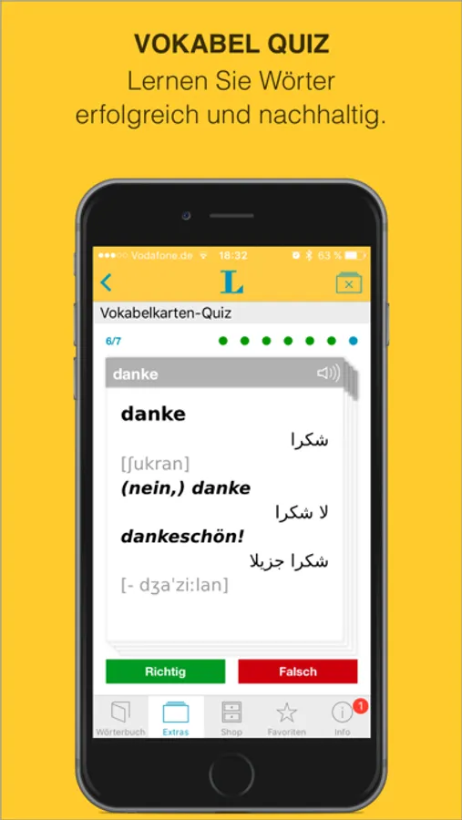 Lost in translation? - Not with this app! Our Arabic German Dictionary provides on-the spot help. Tried and tested a million times over. From the number 1* dictionary publisher. Download the app free of charge. Try it out and get the full version including about 138.000 words and phrases for only 10.99 EUR.