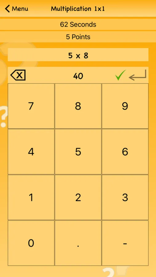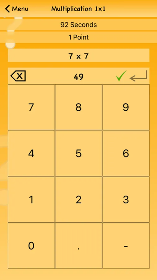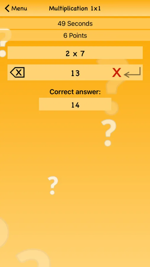 You will see the first math problem as soon as you tap the "Start" button. Your time begins to count down. Use the numeric keypad to type your answer and tap the enter button. The game is over either if your time is up, or as soon as you give a wrong answer.