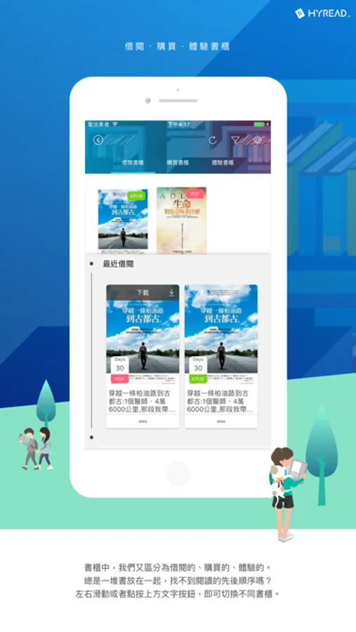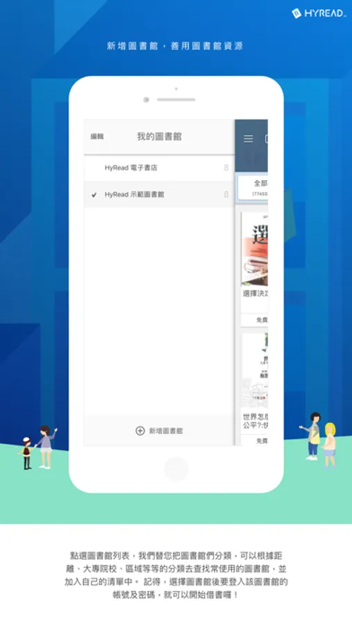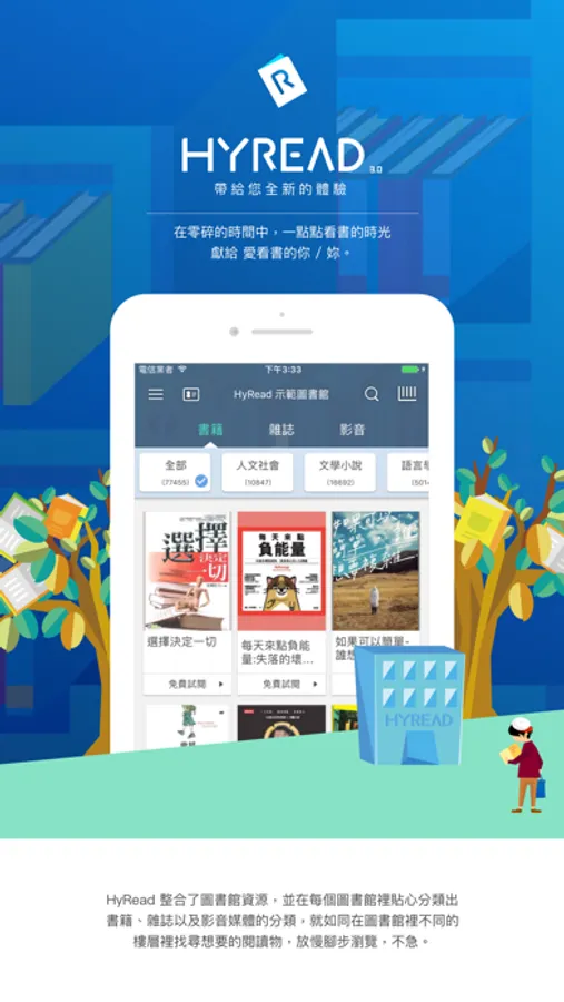 立即下載 HyRead 電子書 App,從您的圖書館免費借閱電子書、雜誌或影片, 。台、港、澳、東南亞地區有上千家圖書館都加入了 HyRead 的行列。HyRead上萬好書任你看,不要猶豫,快去向您的圖書館申請帳號,立即體驗!