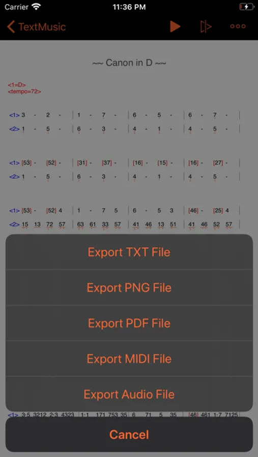 ‣Exports MIDI, PNG, PDF, TXT, M4A