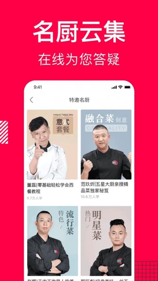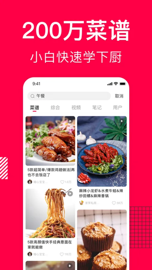 100人的美食团队,数十万美食家共同贡献了超过100万道精选菜谱。在这里,不仅有简单易学的家常菜,更有精品专业的烘焙秘方,无论你想学习川菜、湘菜、粤菜、素菜、凉菜、煲汤,还是想做蛋糕、面包、披萨、西餐,各式各样席卷而来的美味做法,让你目不暇接爱不释手。