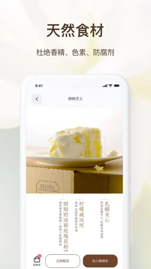 廿一客始终坚持使用真正的乳脂奶油,而不是含有反式脂肪酸的植脂奶油,蛋糕生产过程中,杜绝任何香精、色素和防腐剂。