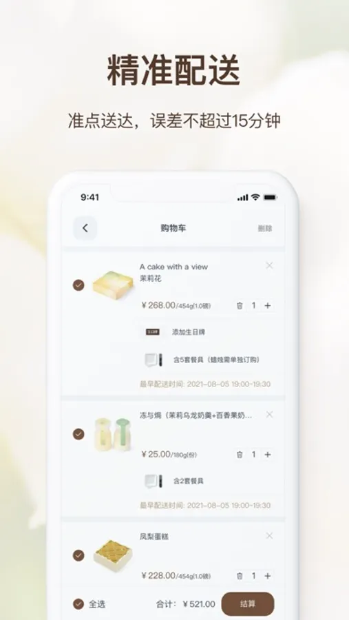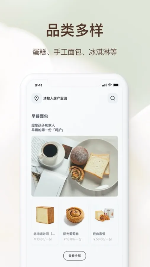 提供网上订购蛋糕、手工面包、冰淇淋、咖啡等食物的服务,全程自有冷链配送。