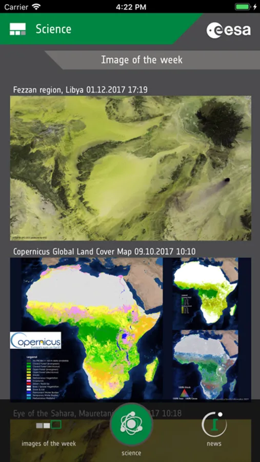 This mobile application serves to promote the ESA Proba-V mission and data by giving users access to vegetation information, as seen from space, and associating this information to pictures taken by the users. Pictures composed through the App can be shared and aggregated through multiple social media channels.