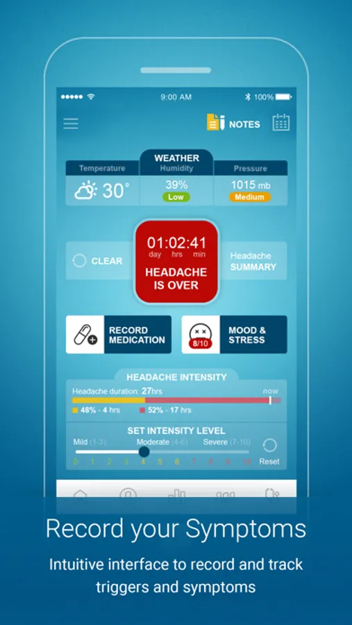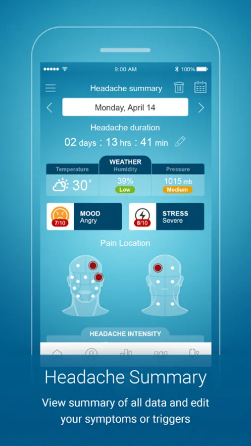 * Highly intuitive Headache Tracker (duration, severity, aura, stress)