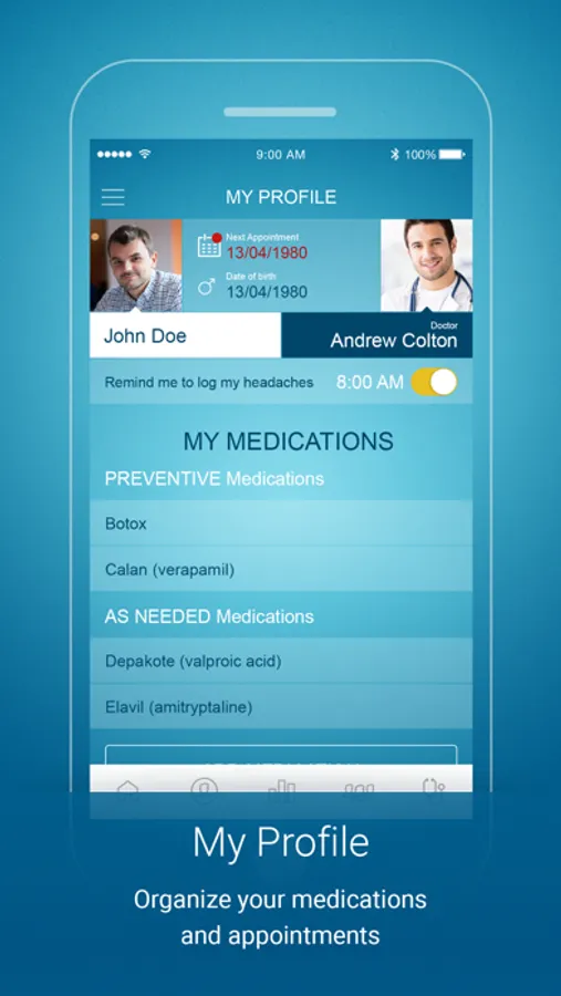 * Connect to your doctor (or our Headache Navigator) — allows your doctor to follow your progress between visits