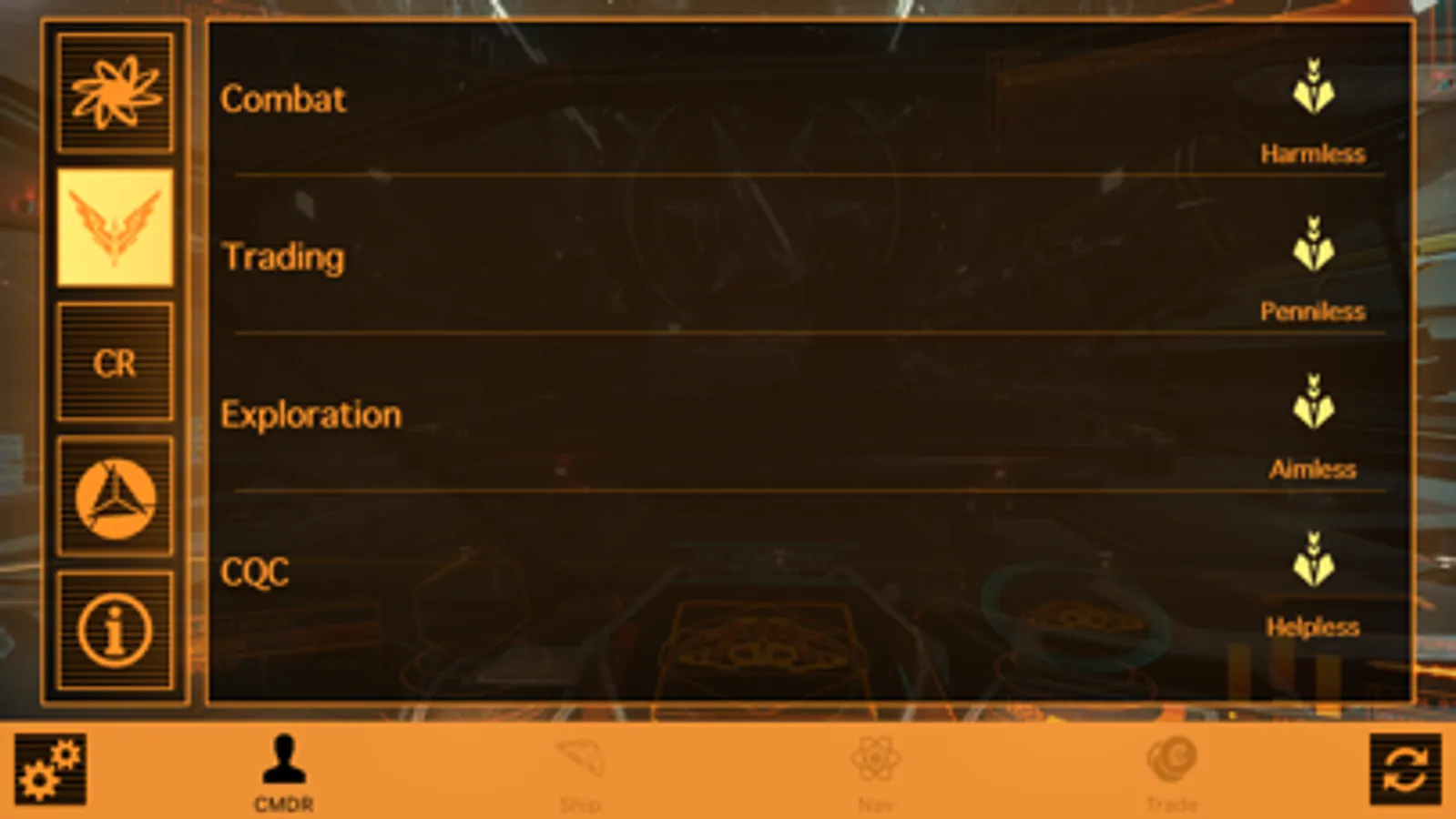 EVA links to Elite:Dangerous to get your CMDR information and follows your progress across the galaxy, letting you know what's happening and ready for you when you need information.
