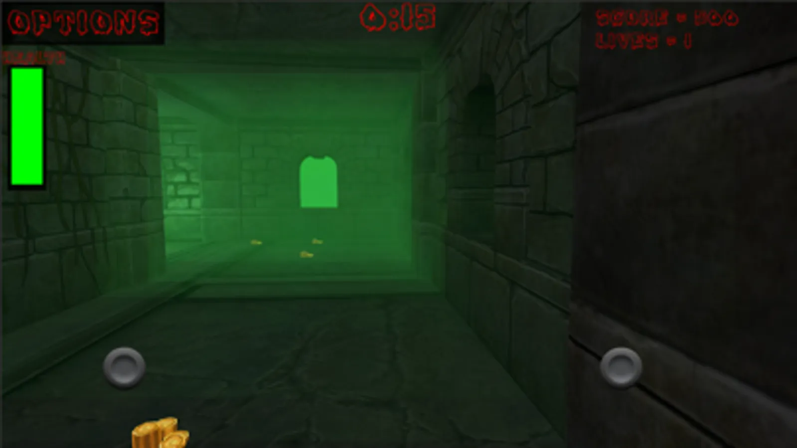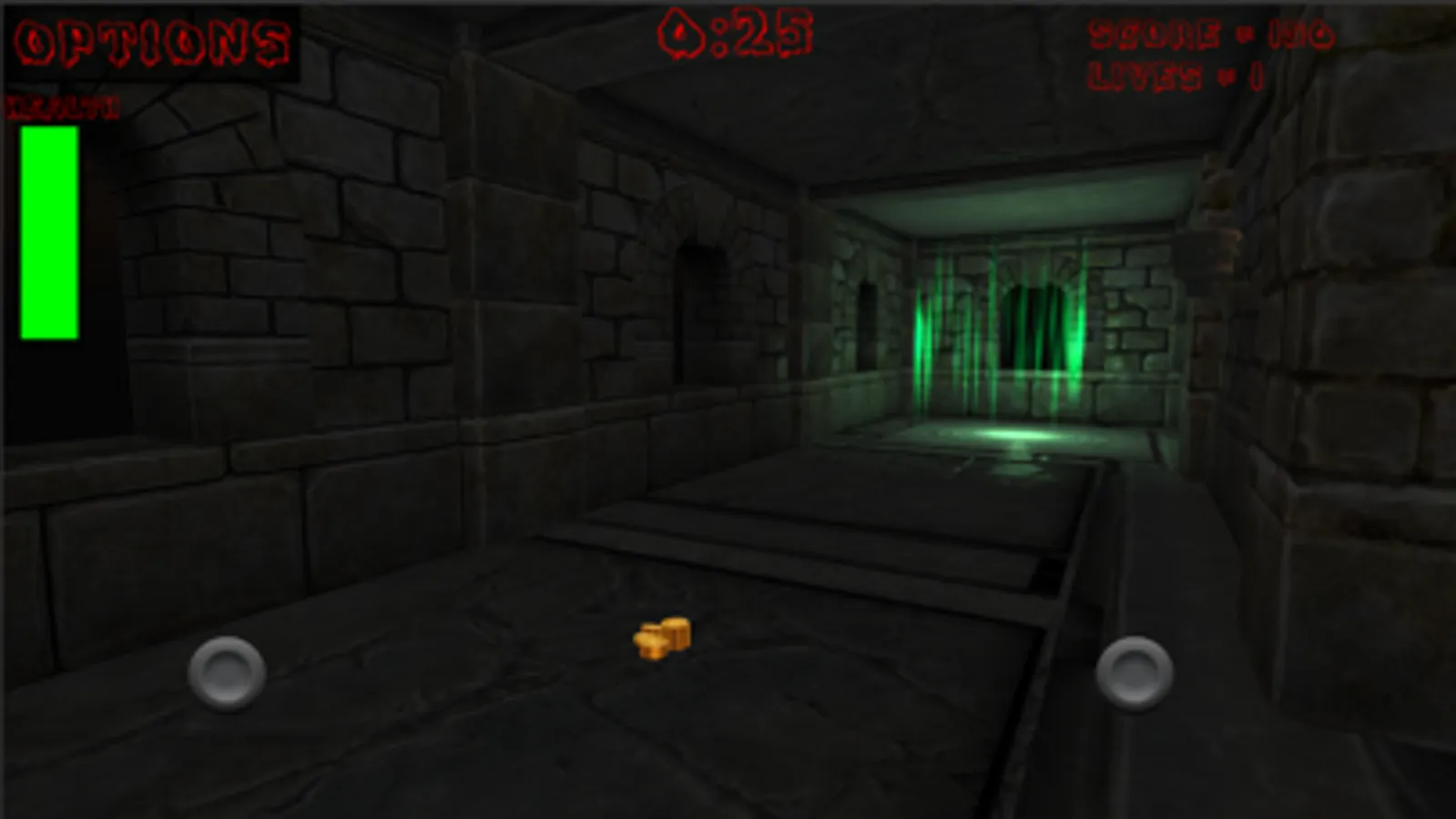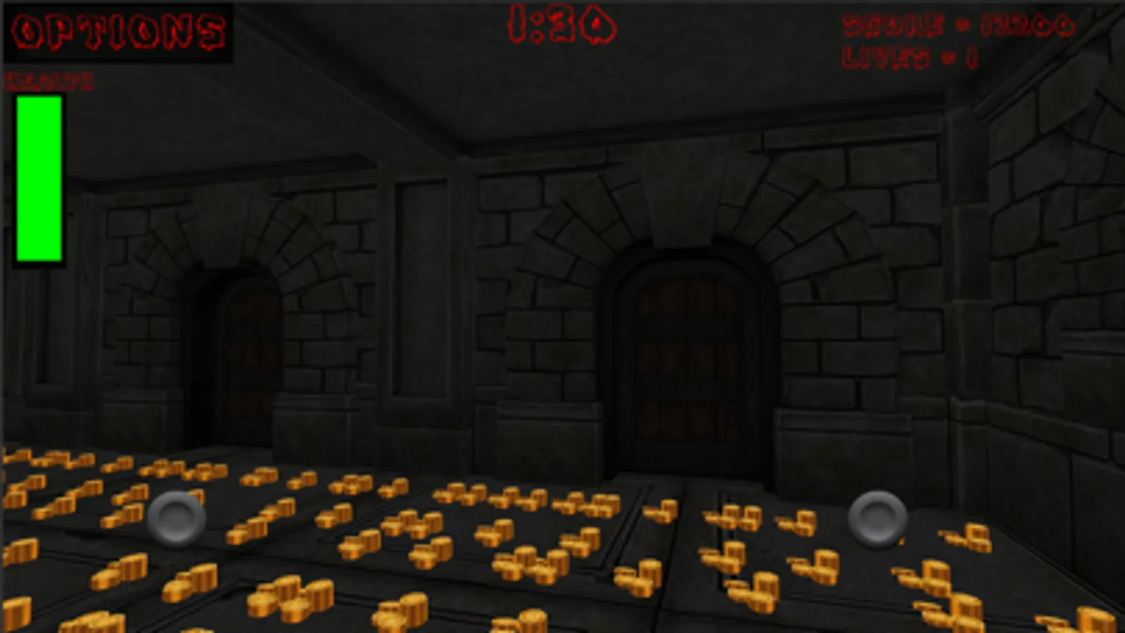 You are trapped deep in a dungeon fortress. You must make your way out thru finding green illuminated transport pads. There are many coins along the way but don't waste too much time because gas will be released in the last twenty seconds of each level.