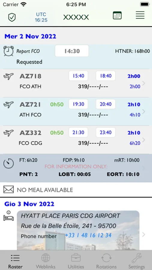 ER Plus adds many features to the basic APP.n- Flight Details/Show Crewn- Hotel Localizationn- Briefing Package (not for all airlines)n- Meteo datan- Rotations filter (for AZ and CL crews)n- Roster sharingn- Roster exportation to PDF nSubscription can last::